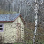 - Quirky but intentional lilac colour on shed window frame.