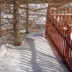 - Shadows on snow by her beloved larch.