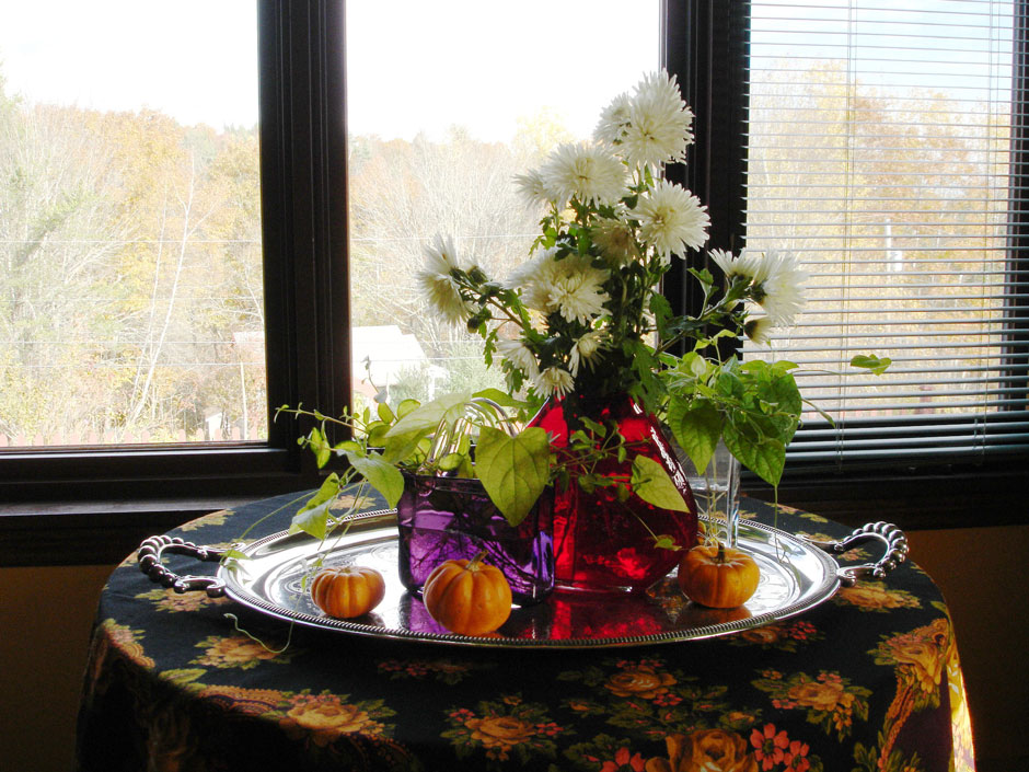 June was exquisitely sensitive to colour and form. Year-round rotating galleries of floral arrangements occupied several locations inside the house and out. Here is an album of flower arrangements, garden arrangements, and home décor, photographed by her.