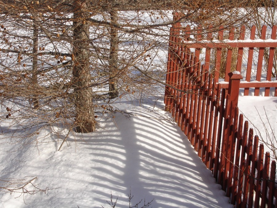 - Shadows on snow by her beloved larch.